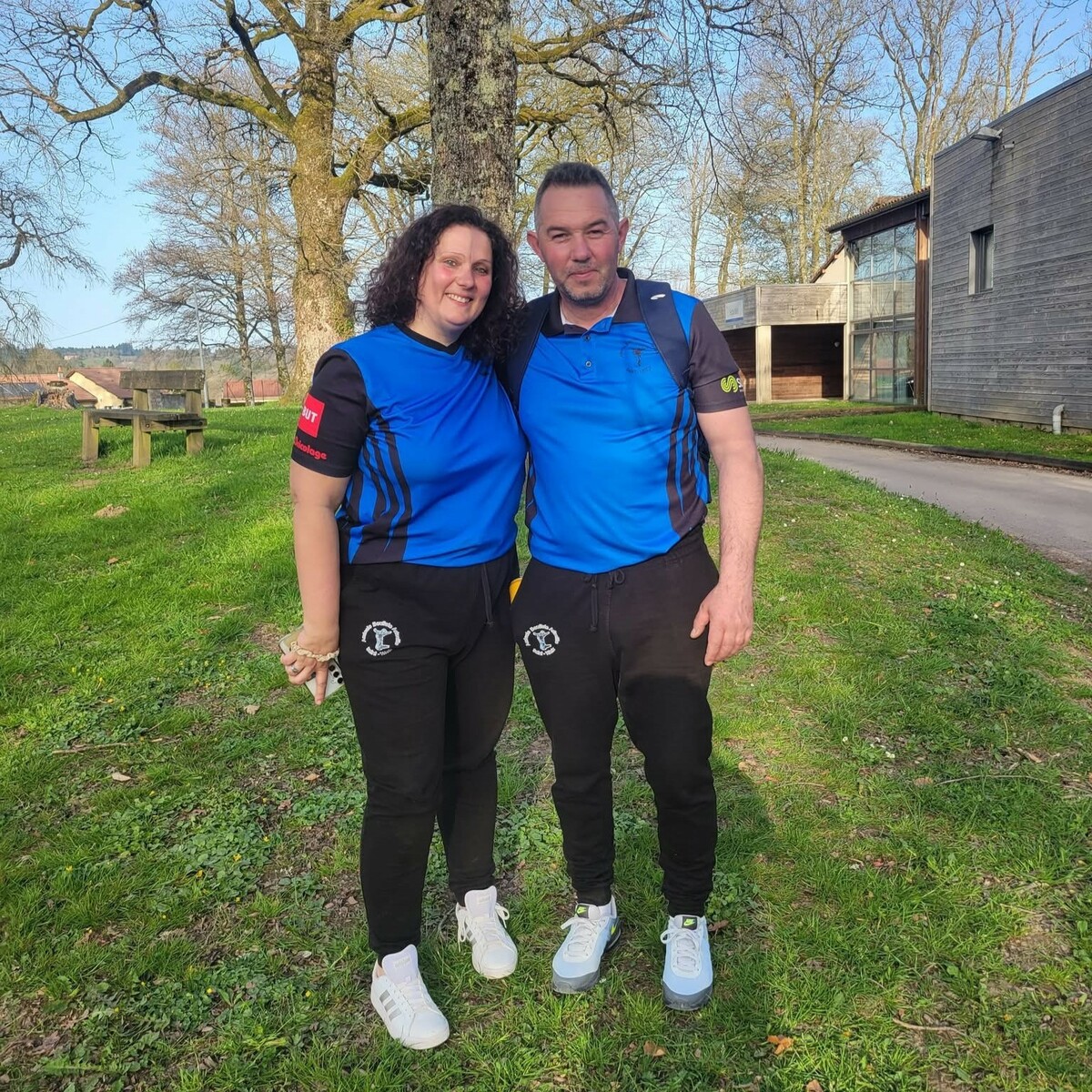 ce week end à l'issue de la première journée des matchs de poule et barrages une équipe d'Arfeuille était toujours qualifiée le dimanche pour les 8èmes; Nicolas et Carole. Victoire contre une équipe d'Ambazac et direction les 1/4 contre une équipe de St-Victurnien avec un espoir de qualif pour poursuivre l'aventure. Hélas l'aventure s'est arrêtée là malheureusement !!! mais tout de même un beau parcours car s'est la première fois qu'ils jouaient ensemble. bravo à eux une nouvelle fois les couleurs du club ont été remarquées..