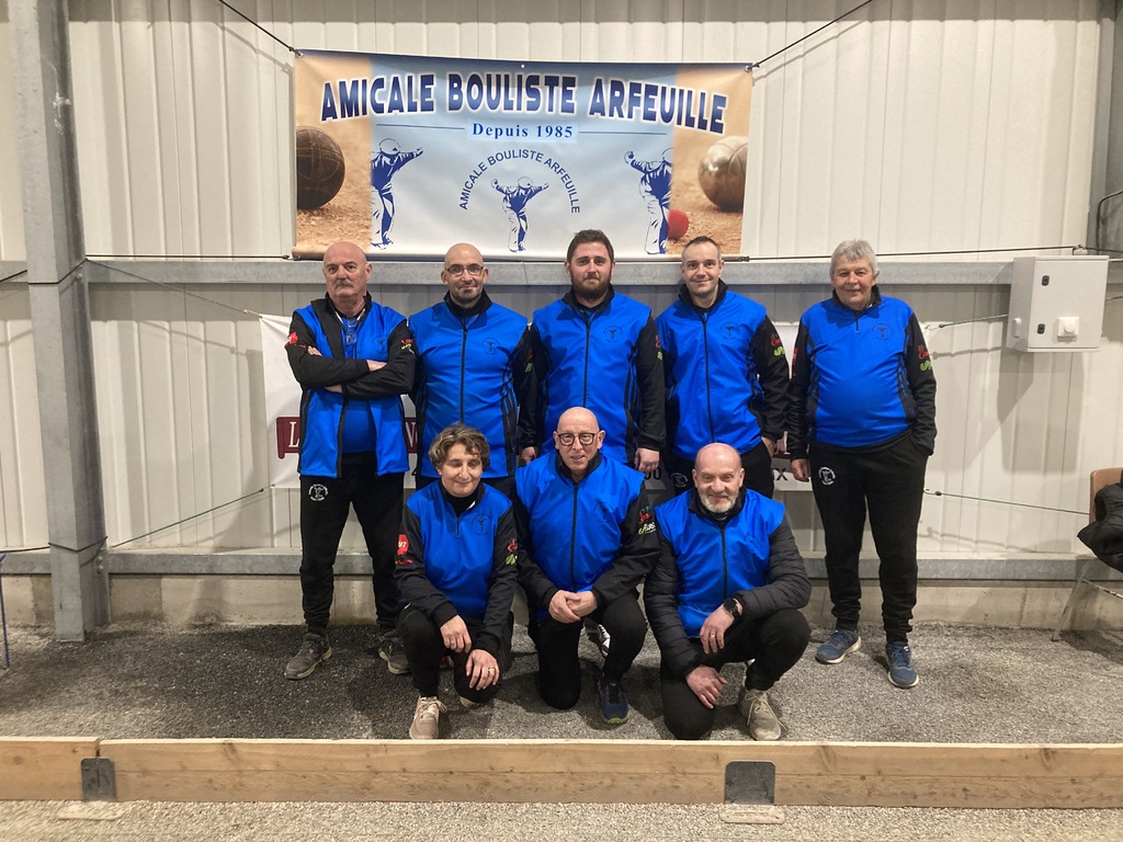 face à une bonne équipe de la Boule l'équipe n'a pas démérité. même si le score parait lourd il ne reflète pas les parties , car elle ont été plus serrées qu'il n'y parait. il n'aura manqué qu'un peu de précision dans les moments clés et parfois de chance. 6 parties perdues à 10/11/12. si près si loint???? cela n'a pas empéché un bon moment de partage après et c'est tant mieux.